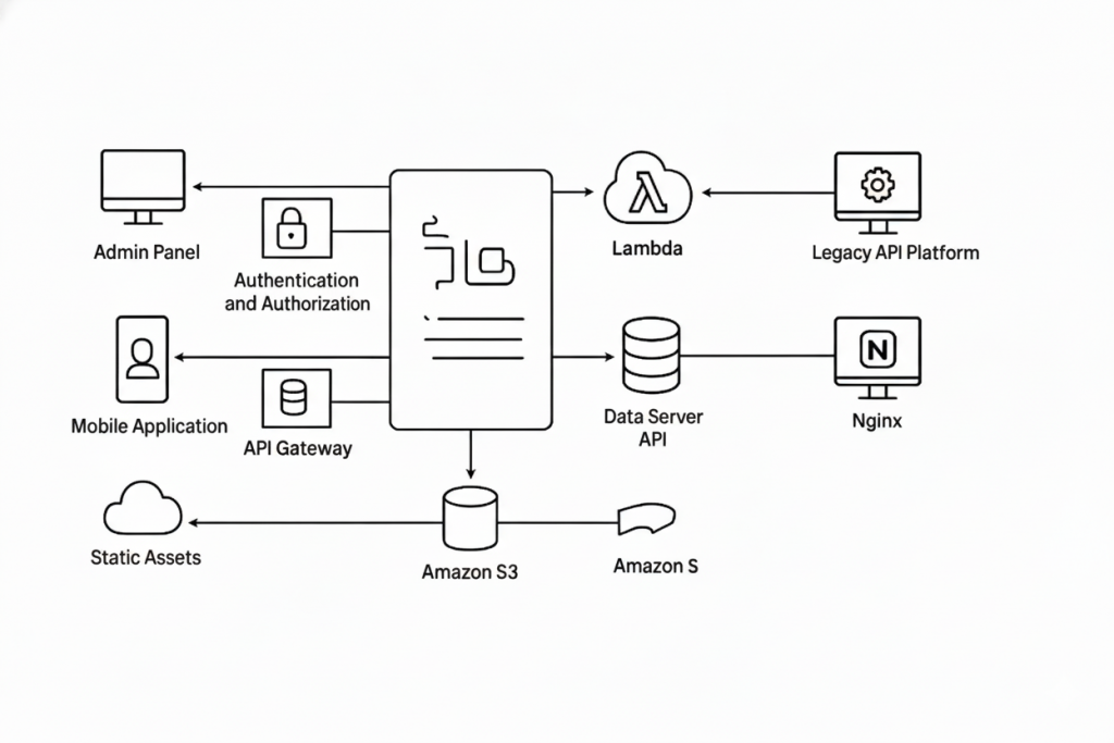 - Legacy APIs are hosted on Amazon EC2 instances with PHP as the backend.